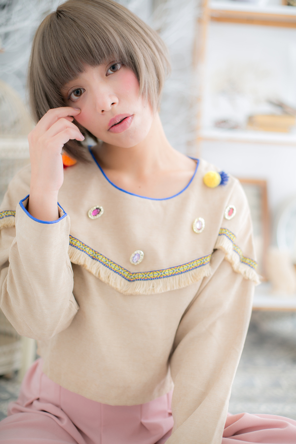 視線集中のアッシュ系ハイトーンはツヤ感と透明感がポイント。トリートメントオイルをなじませてドライし、潤いをたっぷり与えてあげて。