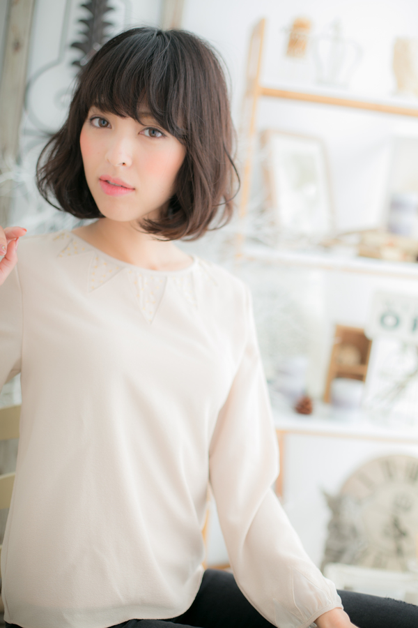ダークトーンのほんのりアッシュカラーで落ち着いたフェミニンスタイル。ペタンコになりやすい方や動きのあるふんわりスタイルに憧れる方のオススメです。
