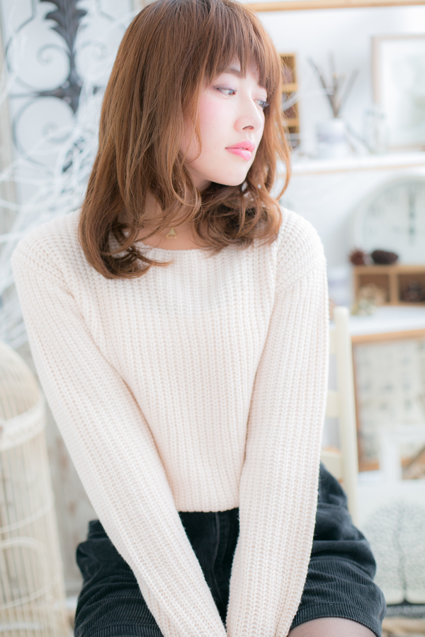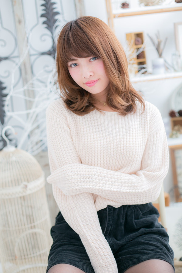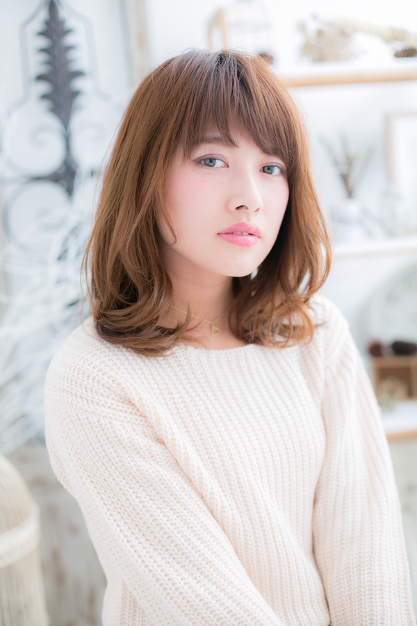 ベージュカラー×ふわミディ
