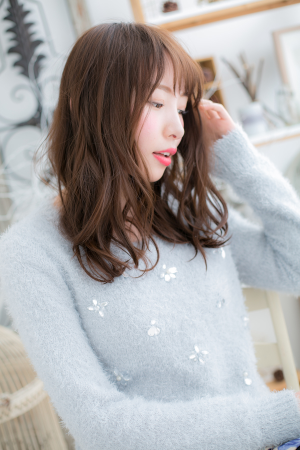 ほつれ落ちる様なウェーブでフェミニンな印象に。ペタンコ髪で弾むようなウェーブにしたい方は、デジタルパーマがオススメ。人気のベージュ系カラーが美人度もUPさせます。