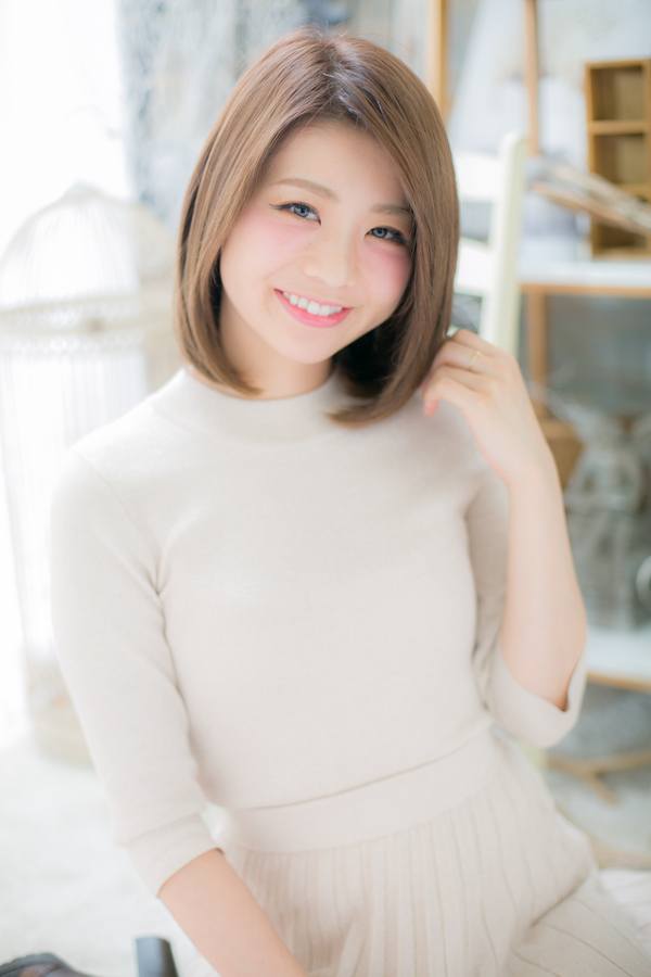 ツヤ感と透明感がポイントのナチュラルなミディアムスタイル。フェミニンな抜け感もプラスされる明るめのカラーで女性らしい印象に☆