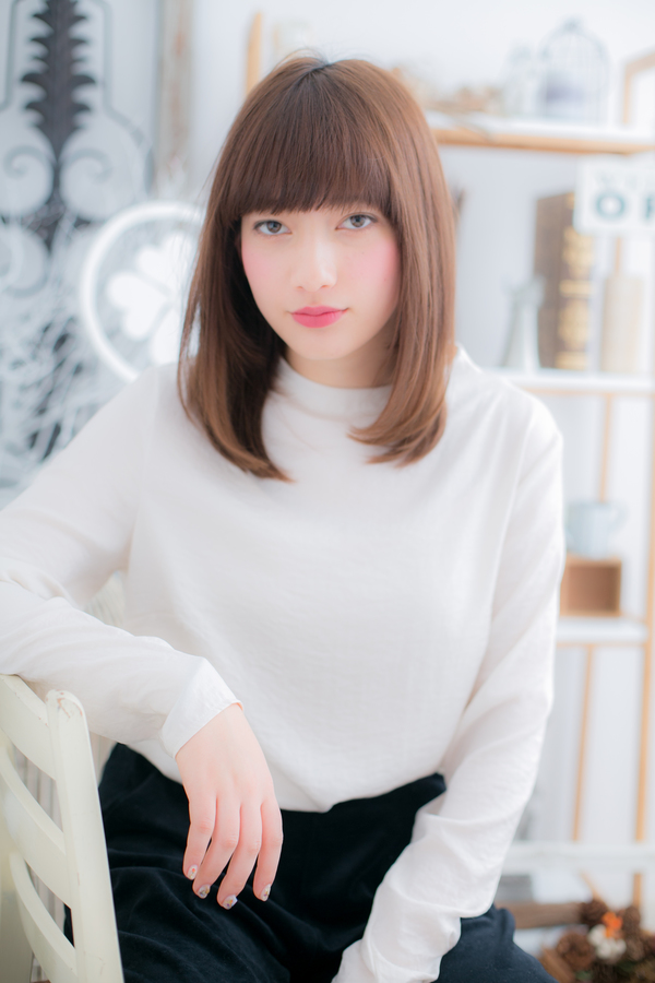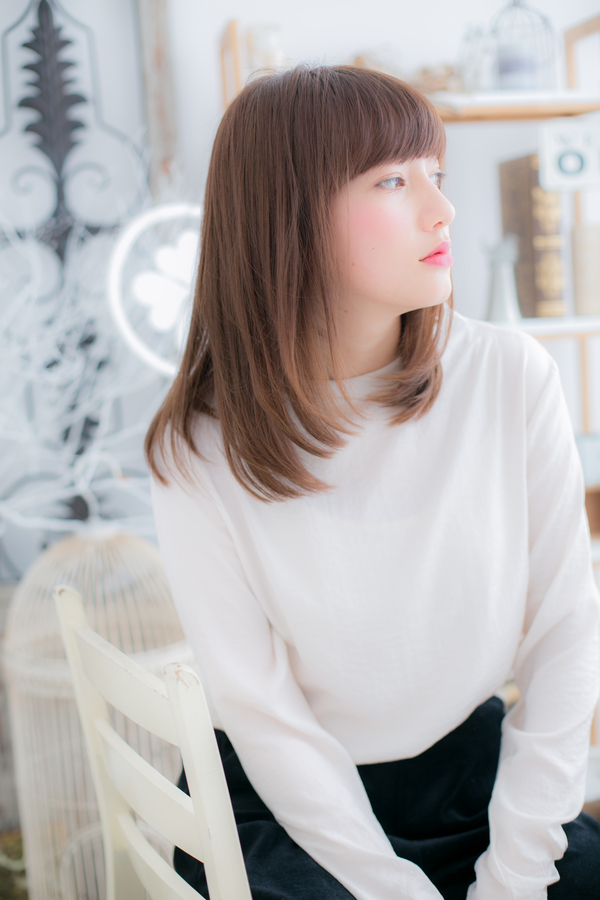 思わず触りたくなるような、指通りなめらかなシルキーストレート。透け感ある前髪と毛先の内巻きで、清潔感ある上品スタイルに。前髪のラインで印象もガラリと変わるのも楽しい♪