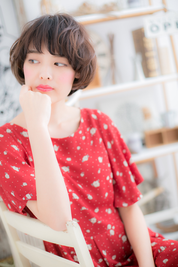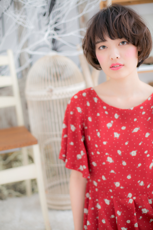 ナチュラルガーリーな雰囲気なのでショートやボブに初挑戦の方もOK。毛先をふんわりまとまる様にドライしたら軽くワックスやスプレーでセット。