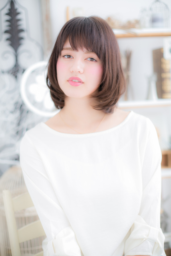 サラツヤキラめく清潔感ミディ。毛先の内巻きワンカールで丸みを持たせて、やわらかい印象に。頬のラインに沿ったサイドの毛流れで輪郭をカバーして小顔見せ。