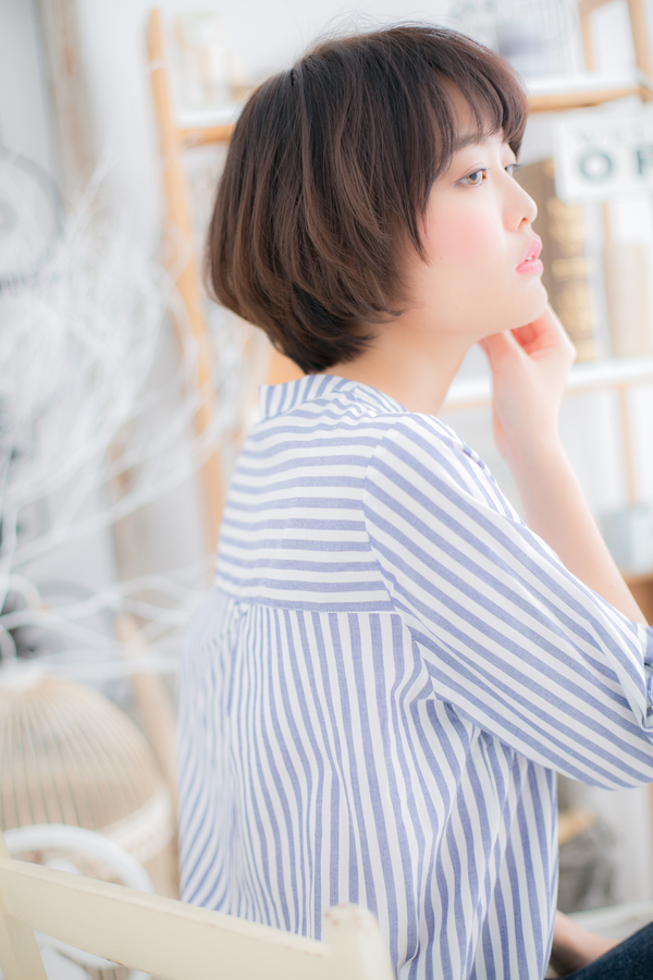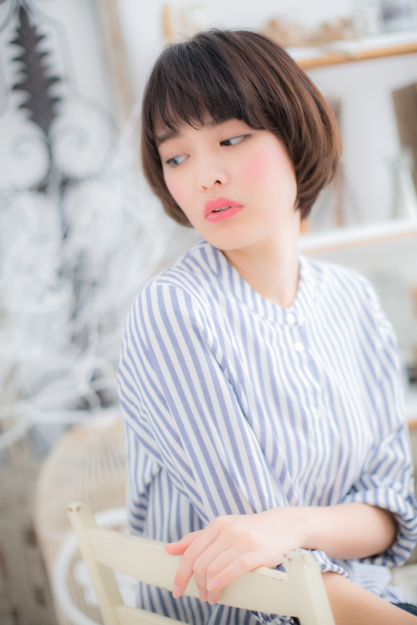 なめらかな曲線を描くラウンドフォルムがピュアかわいい♪耳横に丸い膨らみを持たせることで小顔に見えるのもうれしい。可愛らしさのあるマッシュボブスタイルです。