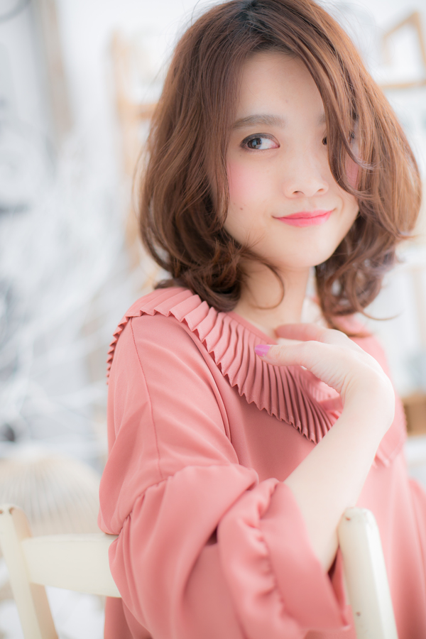 しだれ落ちる前髪で表情をチラ見せするのが小粋なふわミディ。鎖骨ラインのくびれカールでぐっと色っぽく。耳横のワンカールで作るダイアモンドフォルムで頭や顔の輪郭を綺麗に見せます。ラフにかきあげてもカッコイイ。