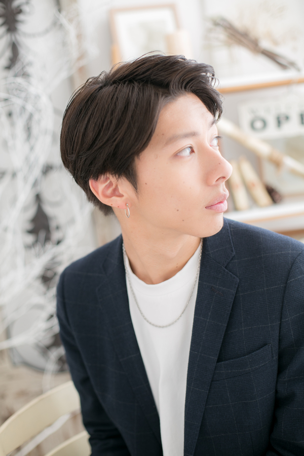 髪がウェット(濡れている)状態でジェルを全体的につけて、そのまま自然乾燥でOK。軽くワックスでサイドパートにセットしたスタイリングなど、シーンに合わせてスタイリング。