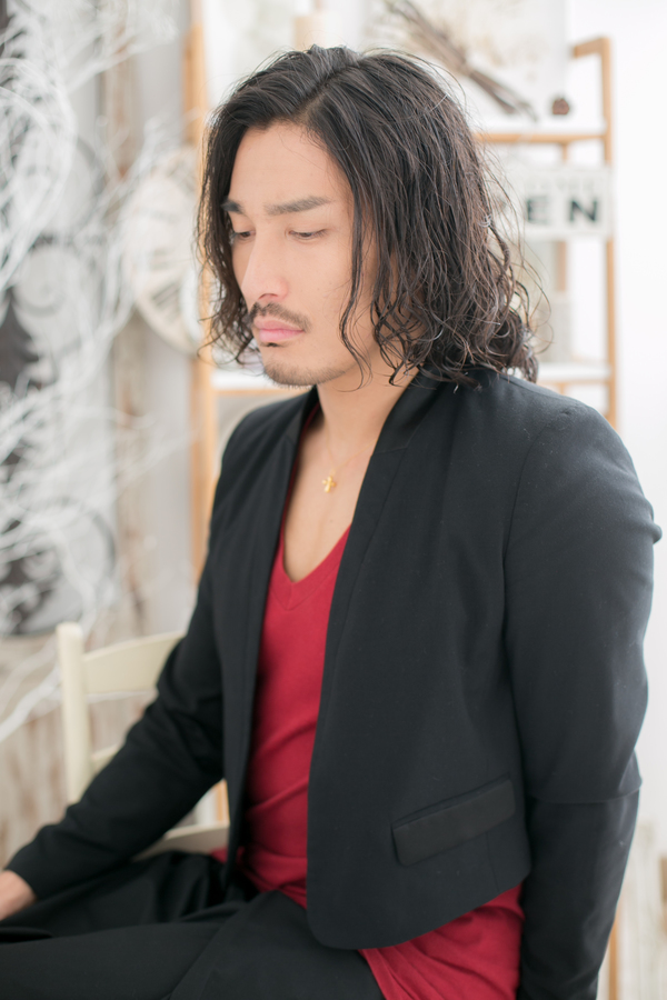 毛先メインにスタイリング剤をつけて、サイドパートで分けるだけ。大人カッコイイ色気のあるワイルドスタイルに。