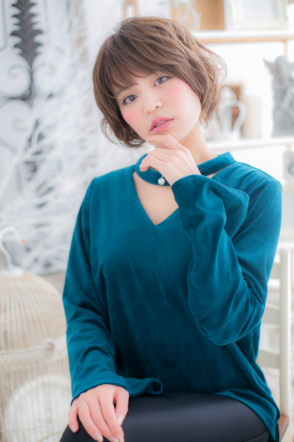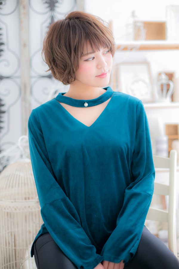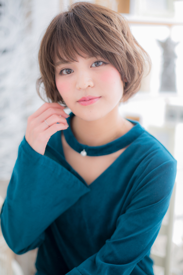 透明感あふれるアッシュカラーと、ナチュラルなウェーブ感がマッチしたウェーブボブスタイルです。ストレートではだせないカジュアルでフェミニンな印象に。