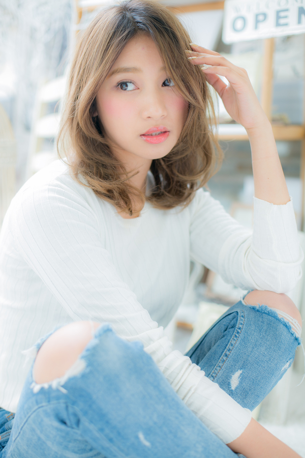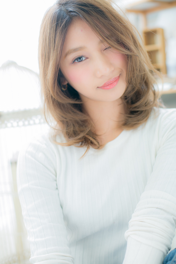 顔周りのレイヤーと毛先のカールがフェミニンな華やかさをプラスしてくれます。毛先に軽くミルクやワックスでスタイリングで簡単にセットも。