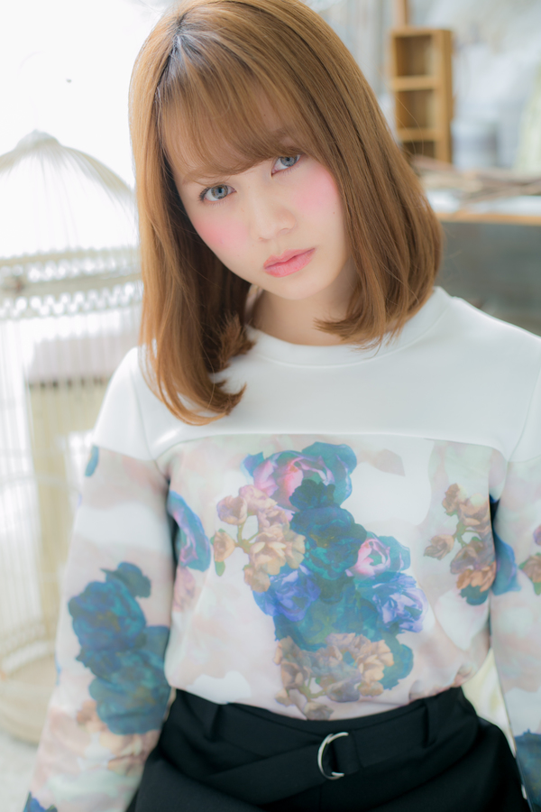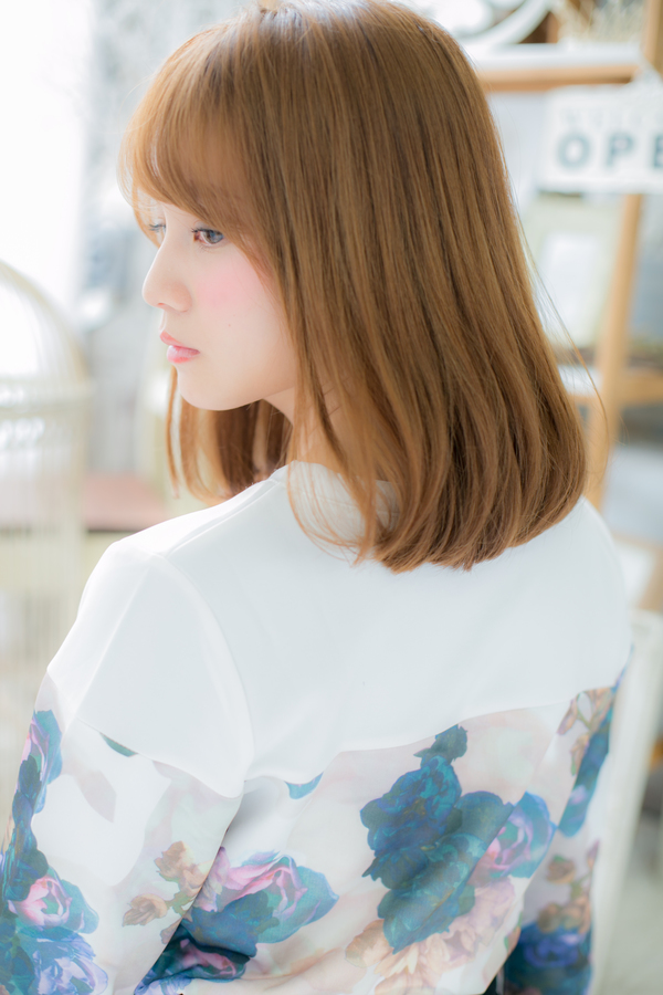 毛先のやわらかなワンカールでやわらかな動きをプラス。優しく軽やかな動きで、ハイトーンでもナチュラルな印象に。フリンジバングもガーリー。耳かけしても大人かわいい。