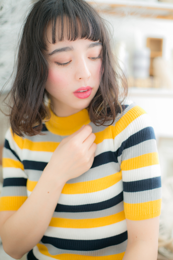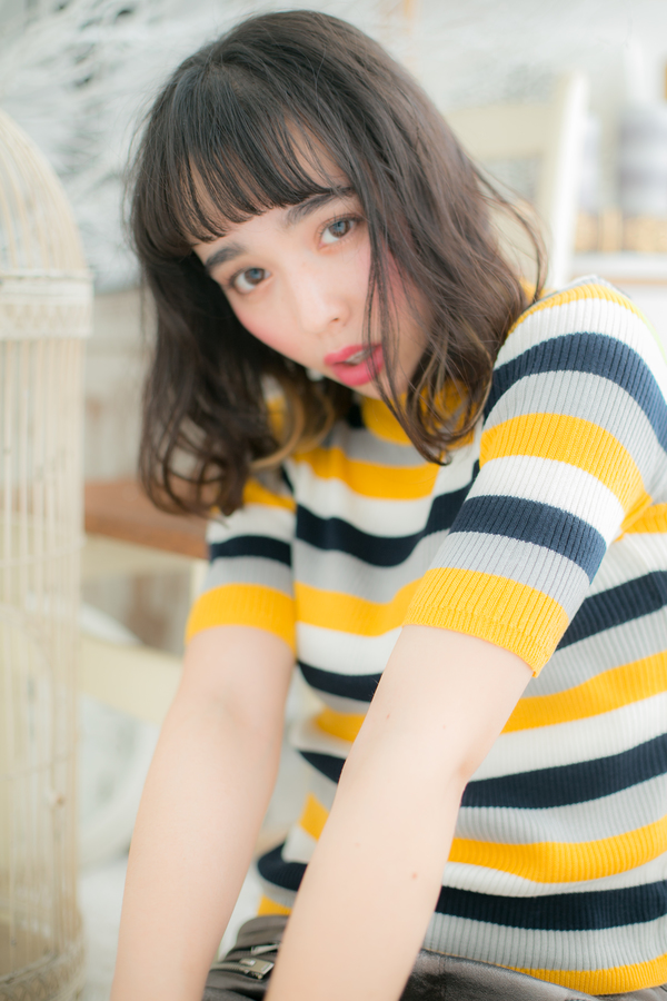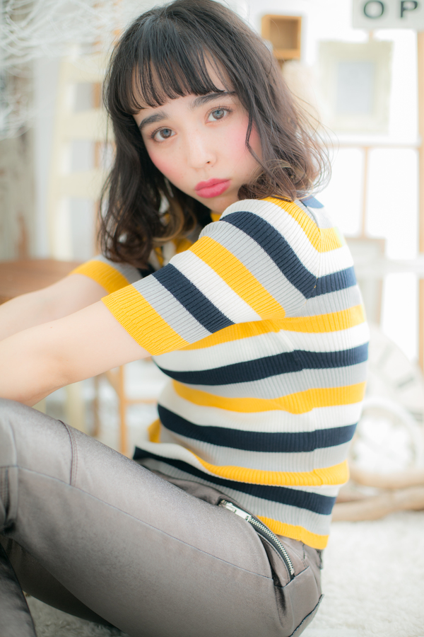 ニュアンスカールと透け感あるショートバングがカワイイガーリーミディ。毛先にハイライトを入れることで、個性的でオシャレ度UP!奥行き感も出て表情豊かに仕上がります。周囲と差をつけたい方にオススメですよ。