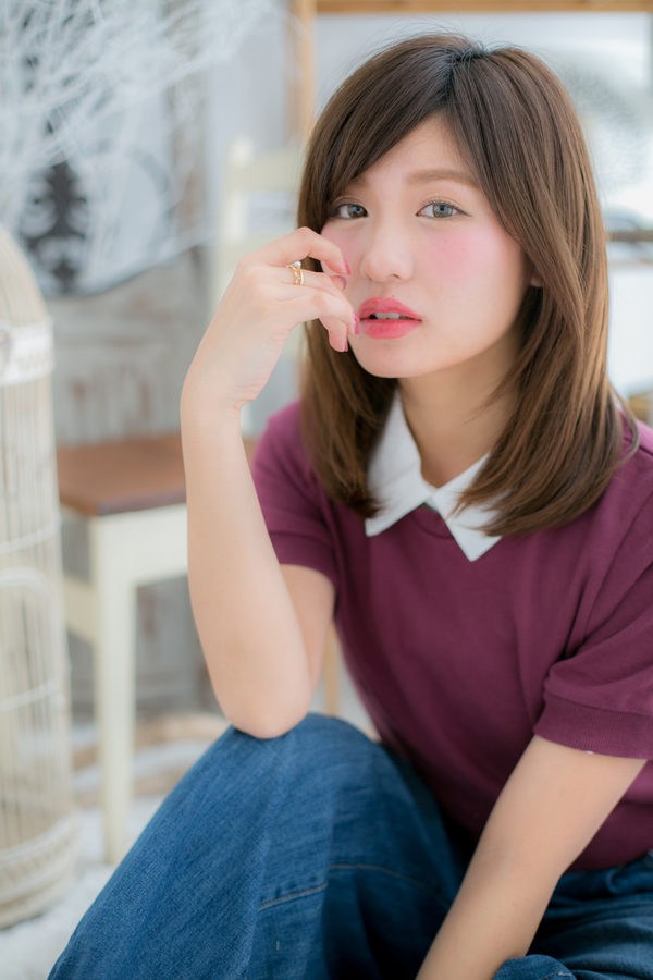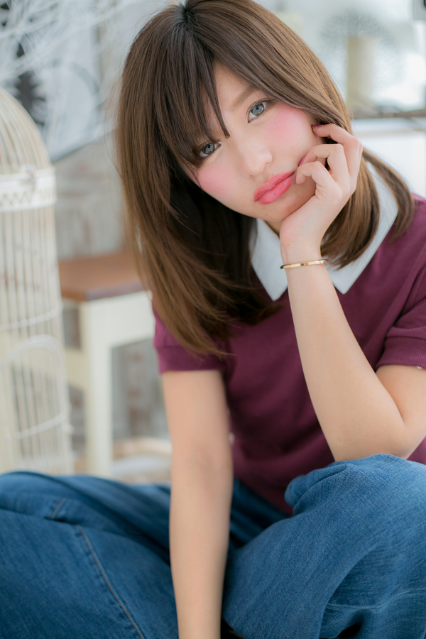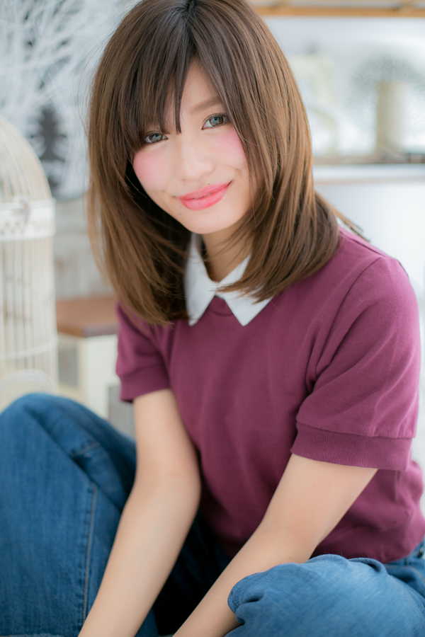 ローレイヤーの重めスタイルも、透明感あるツヤカラーと透け感あるフリンジバングで、サラツヤ感ある重軽MIXな好感ストレートミディに。清潔感ある王道モテスタイルは、オフィスでもデートでも女子会でも使えますよ♪