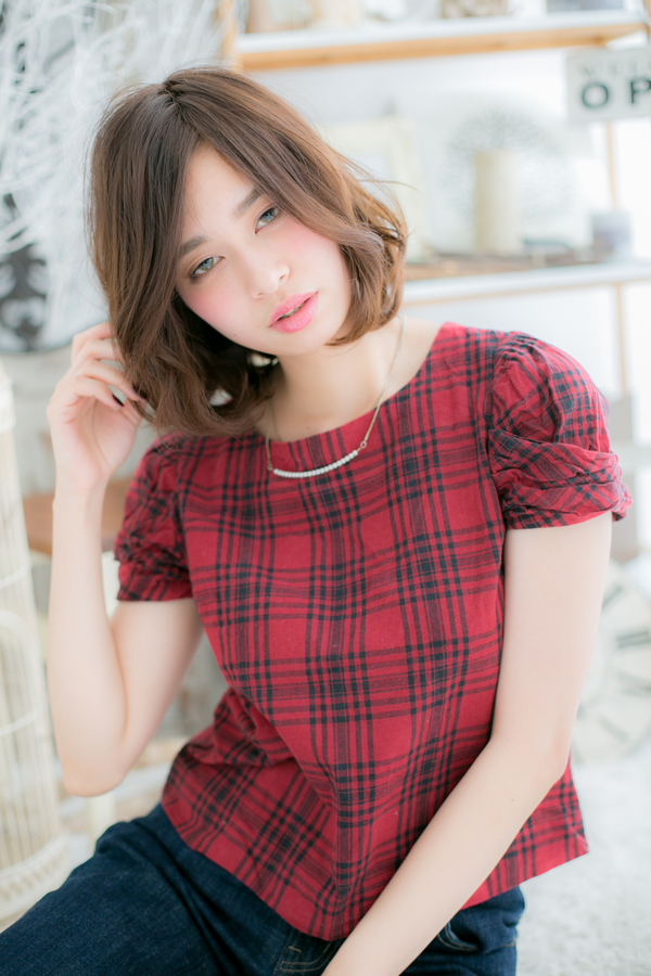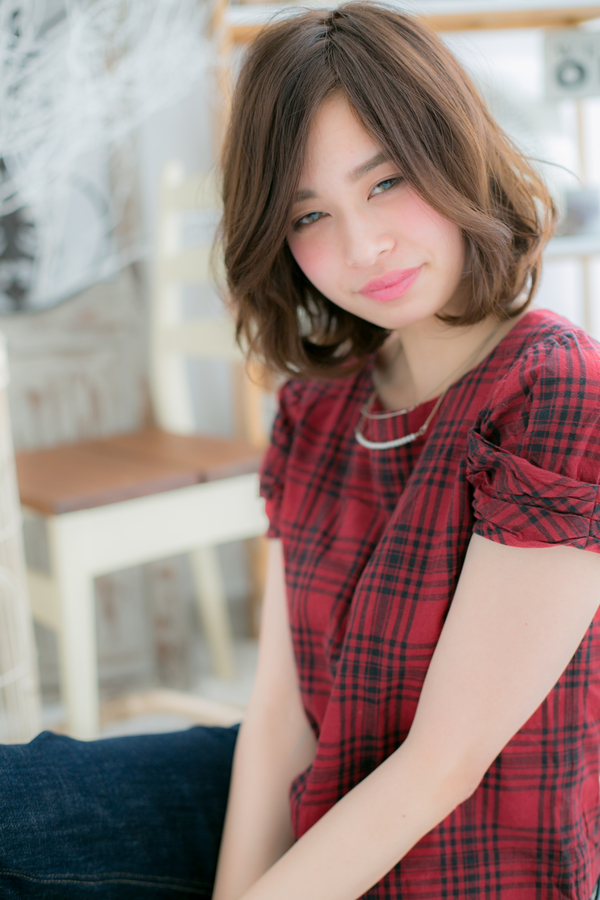 伸ばしかけの髪も可愛く決まる♪ひし形フォルムのエアリーミディ。ダークトーンの重めスタイルの中に、くびれカールとエアリーなゆるふわ感で軽やかさをプラス。重軽MIXのガーリーミディでしっとりまとまりやすく♪