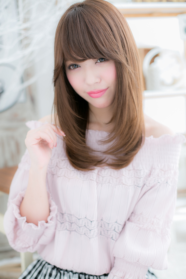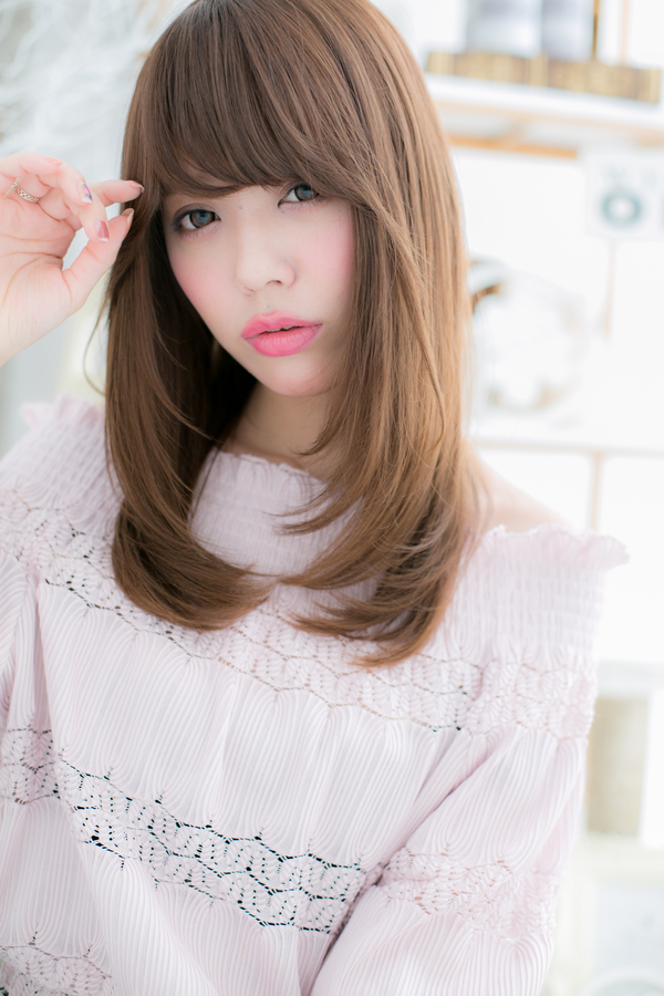 透明感あるツヤカラーがポイント。洗い流さないトリートメントやオイルで潤いキープ!重厚感あるロングスタイルも軽やかでしっとりまとまります。うぶバングでモード風にしたり、姫カットで個性的なラブ可愛い印象にしても◎