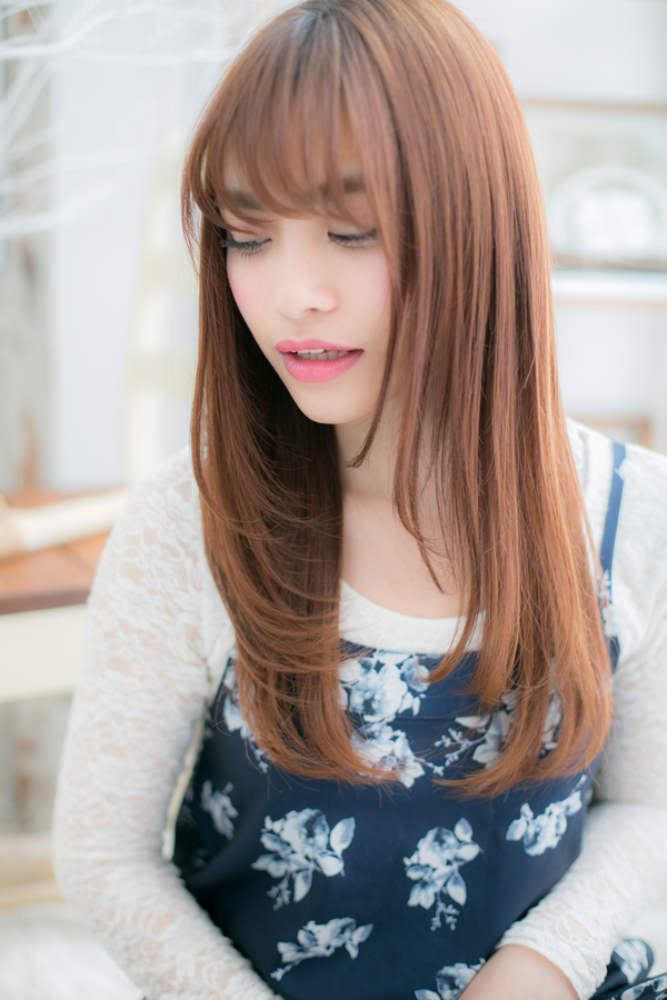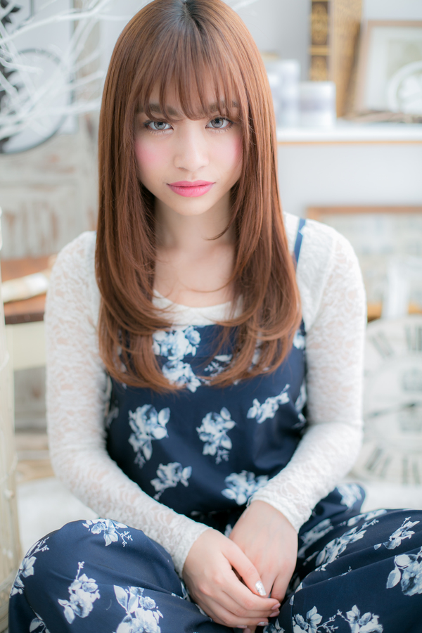 目にかかるほどの長めバングで目元を印象つけて目力UP!サイドの毛流れで小顔に見せます。透け感あるシースルーバングで、表情をチラ見せしてsexyに。スパイスの効いたレッドカラーのツヤ髪で甘辛MIXな小悪魔ガールに☆