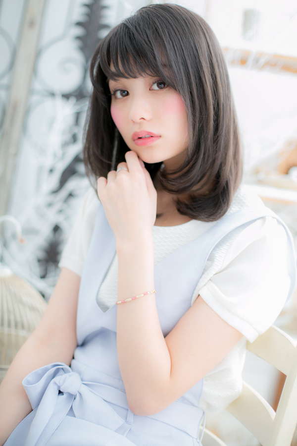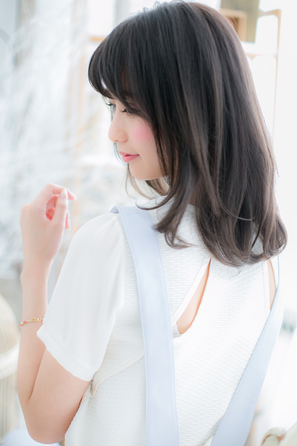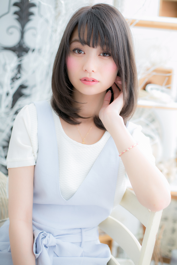 うっとりする黒髪ストレート。クラシカルな好感スタイルは、オフィスでもデートでもOKです。頬を包み込んで小顔に見せ、目の上ギリギリの斜めバングで目力UP。似合わせカットで美人顔に。ボブからの伸ばしかけの方にも◎ヒアルロン酸カラーは白髪にも対応可。