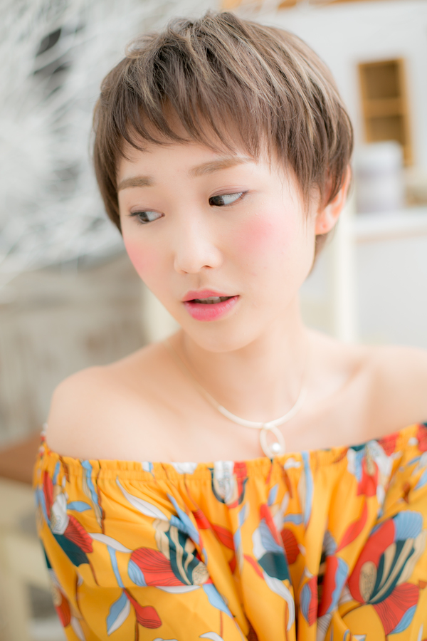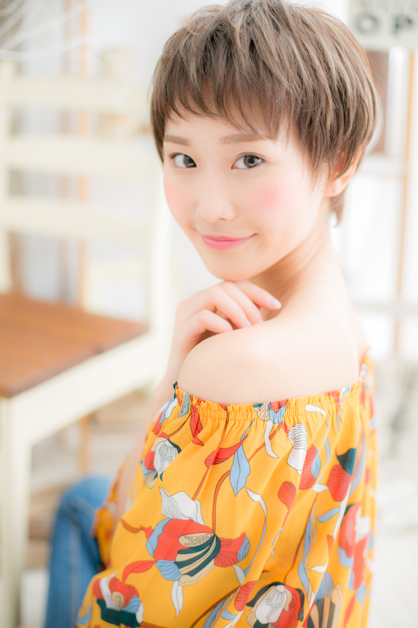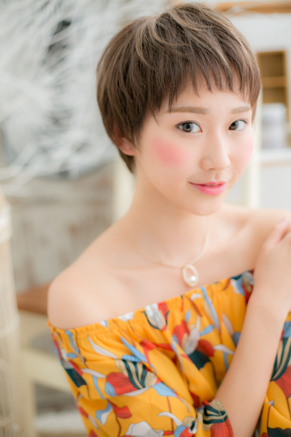 デコルテをキレイにアピールするなら潔いショートが一番!ナチュラルだけど女性らしい、丸みあるやわらかなフェミニンショートをご提案します。似合わせカットの技で、ラフカジュアルなガーリーショートにします♪