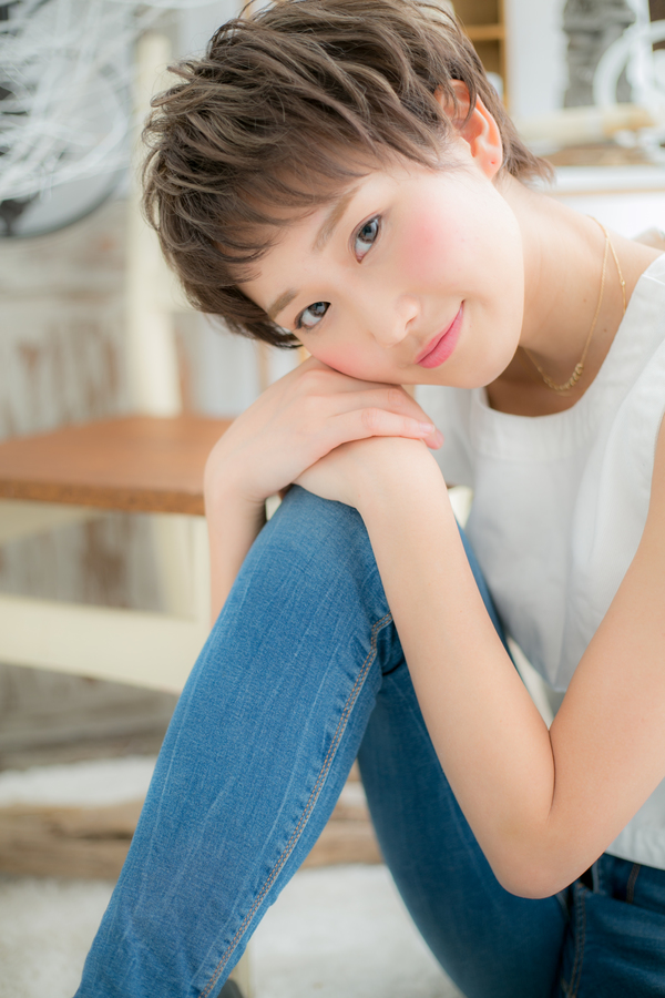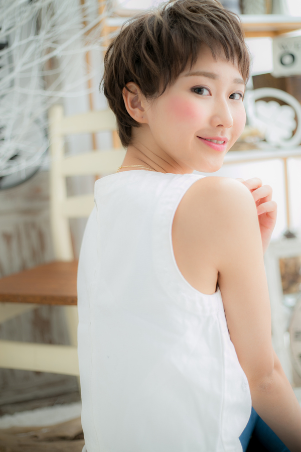 丸みあるコンパクトフォルムで、フェミニン&小頭に仕上げた大人ショート。トップをふんわり仕上げることでスタイルアップ効果を狙います。スッキリショートでも、空気感&温感カラーで女性らしい雰囲気に仕上がります♪