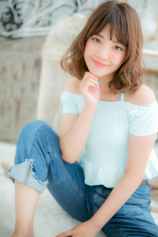 肩下のボブベース。トップにレイヤーを入れてやわらかさと軽さを演出。シフォンウェーブでフェミニンに仕上げたミディ。グラデーションカラーやインナーカラーで立体的に仕上げて(メイク担当:COVER HAIR グループ 成田)