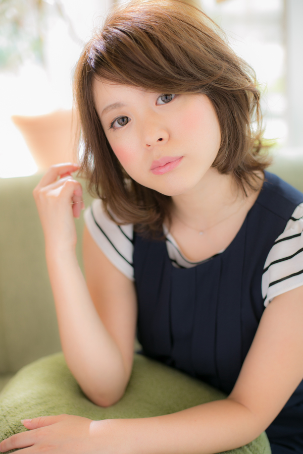 ボブベースのスタイルに,根元から中間にストレートをかけ,毛先にはワンカールをつけたナチュラルなスタイルです。誰にでも似合う大人かわいいフェミニンスタイル☆
