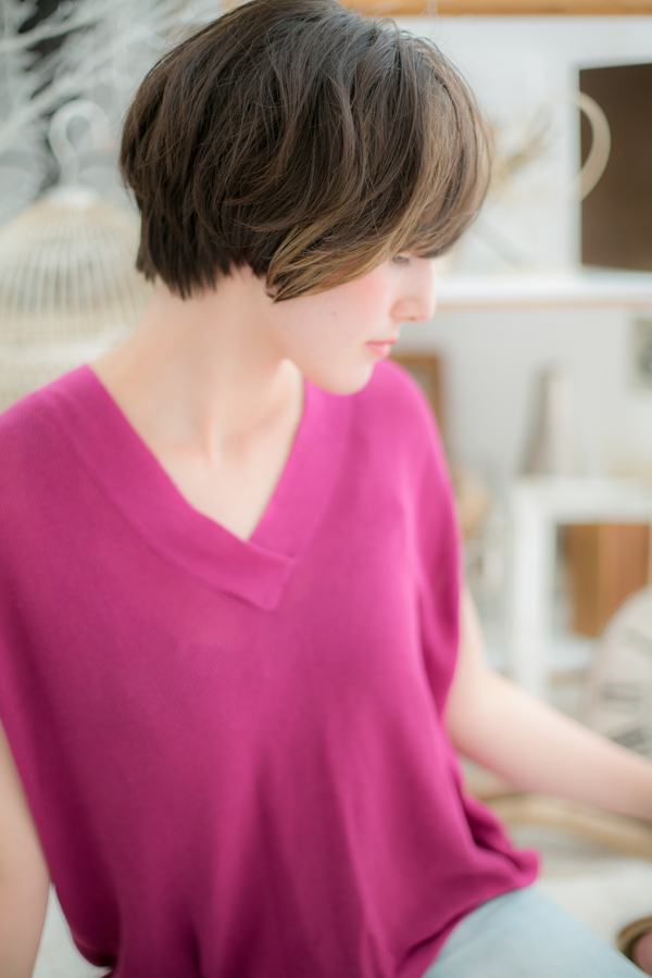 大人女子の厚めバング小顔プレミアムショート