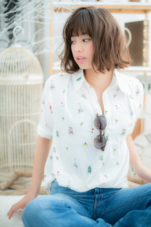 ナチュラルボブから前下がりな毛先をくせ毛風にスイングさせラフに仕上げたカジュアルふわミディ。厚めバングで目力UP!サイドの毛流れで輪郭をカバーして小顔効果。グラデーションカラーで立体的に見せて表情豊かに☆