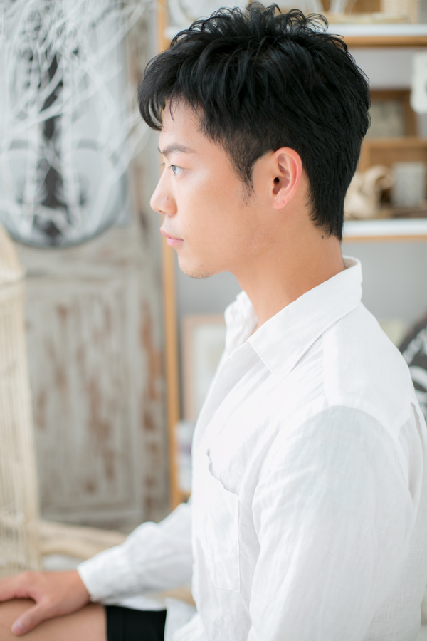 ドライ後、ワックスやムースをなじませるだけの1分スタイリング。前髪はナチュラルに下ろしたり、ビジネスシーンではアップバングやオールバックで精悍な顔立ちに仕上げてもOK。アシンメトリーなアレンジもGOOD!