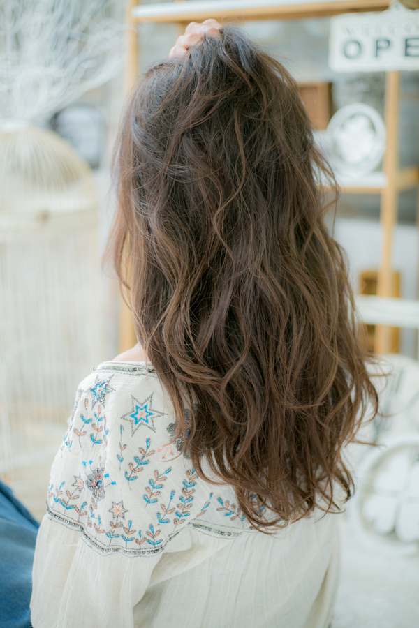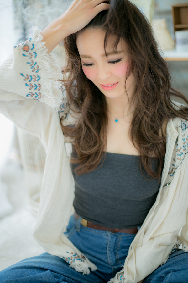 細かく入れたハイライトの上にグラデーションカラーを重ねてトリートメントしたようなカラーリングで髪の毛の悩みも解消。毛先に向かってナチュラルに明るくすることで、こなれ感ある大人アッシュでヘアアレンジしやすい。巻いた時に綺麗に重なるレイヤーカットで簡単スタイリング大人女子のコーデを完成☆
