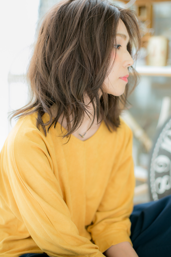 センターパート&くせ毛風カールで大人の余裕を醸すアンニュイな雰囲気のふわミディなヘアスタイル。前下がりで小顔対策もOK。斜めバングや厚めバングで目力UPしたり、大人かわいい耳かけしてヘアアレンジに◎トリートメントしたようなカラーリングで髪の毛の悩みも解消する人気のカラーやピンク系のカラーも◎30代・40代にもおすすめ!(メイク担当:COVER HAIR GROUP近藤)
