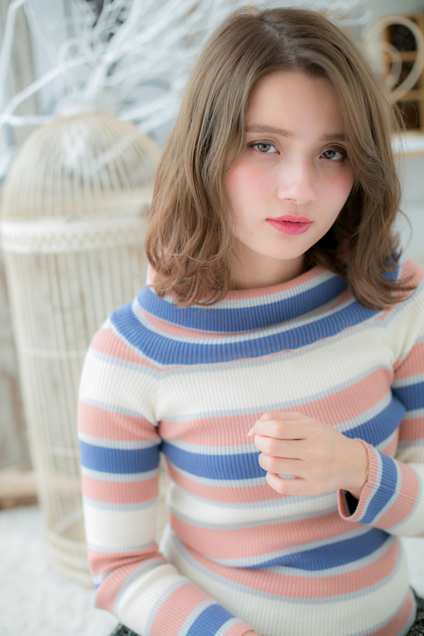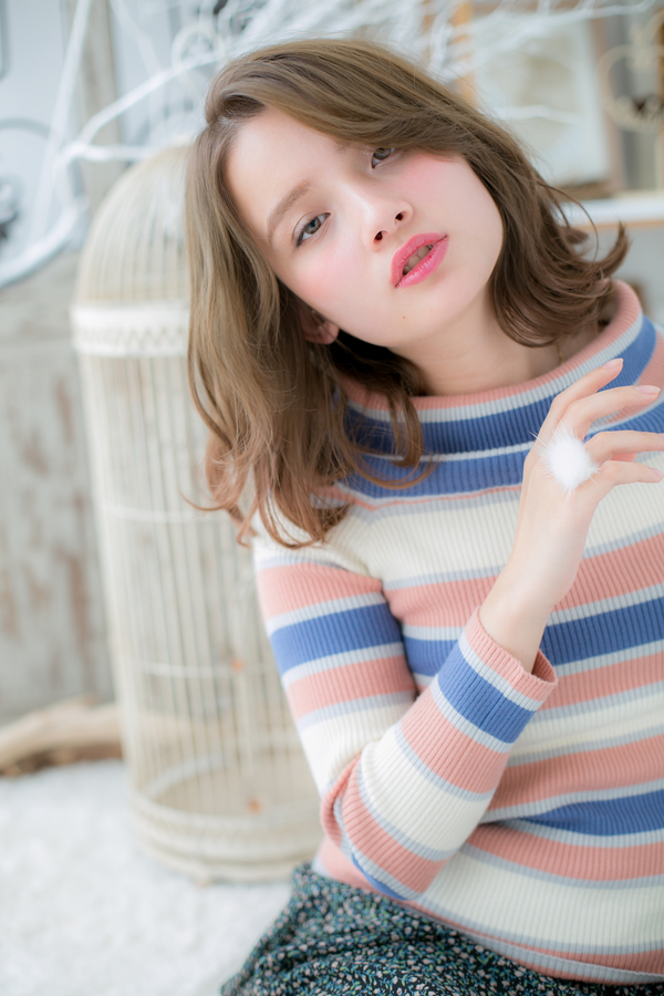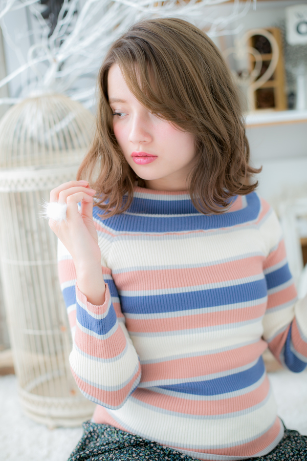 前下がりのしだれパーマが色っぽいふわミディのヘアスタです。くせ毛風カールでふわっと輪郭カバーで小顔に見せて大人女子のファションUP。ラフなかきあげの他、大人かわいい斜めバングや厚めバングでヘアアレンジ◎。耳かけしてもコーデを完成!ミディアムヘアを際立たせるグラデーションで髪の悩みも解決!アッシュ系やピンク系のカラーもおすすめ!30代・40代や面長の方に◎(メイク担当:COVER HAIR GROUP棟方)