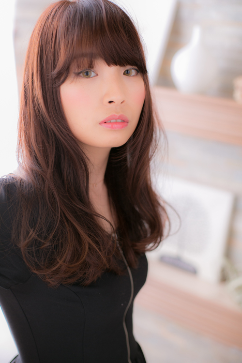 ツヤ感とちょいモードさを出すために、赤系をmixしたブラウンカラーでカラーリング。パッツンバングでガーリーにしてもよし、流してフェミニンにしてもよし♪アレンジやプチチェンジがしやすいスタイルなのもいいところ!
