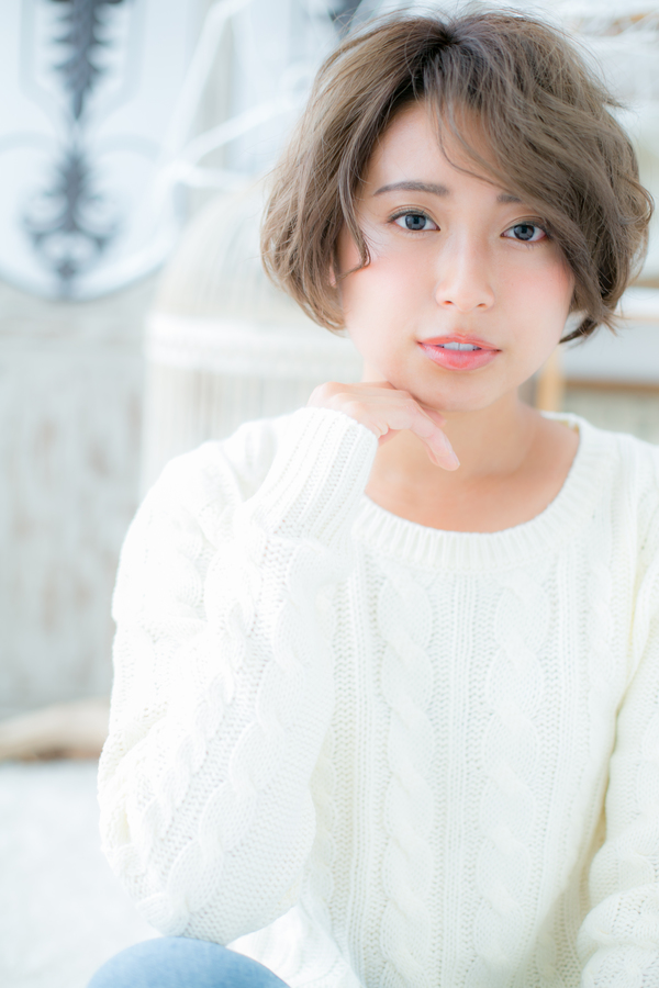 ふわくしゅっとしたくせ毛風エアリーカールが大人かわいい前下がりボブ。輪郭カバーして小顔見せ、斜めバングで目力UP。キュートなフェミニンボブは耳かけや厚めバングにヘアアレンジ。ミディアムヘアを際立たせるグラデーションやトリートメントしたようなカラーリングで髪の毛の悩みも解決する人気のカラーもおすすめ!30代・40代や面長の方◎(メイク担当:COVER HAIR GROUP成田)