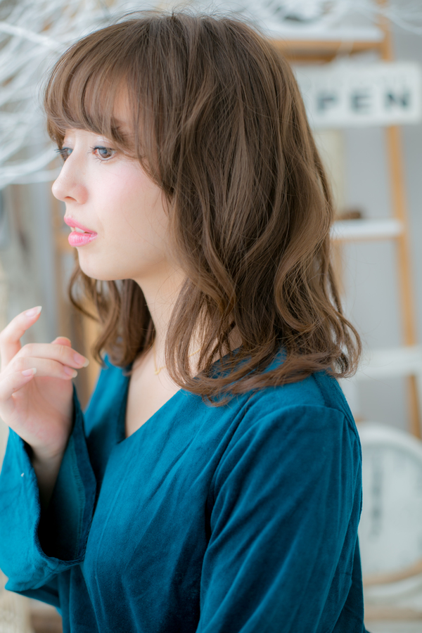個性的な厚めバングやセンターパートで大人クールにしてもOK。大人ボブやフェミニンボブ、ナチュラルボブや前下がりボブからの伸ばしかけにオススメ。優しくやわらかな雰囲気はオフィスでもデートでも好感度バッチリです。