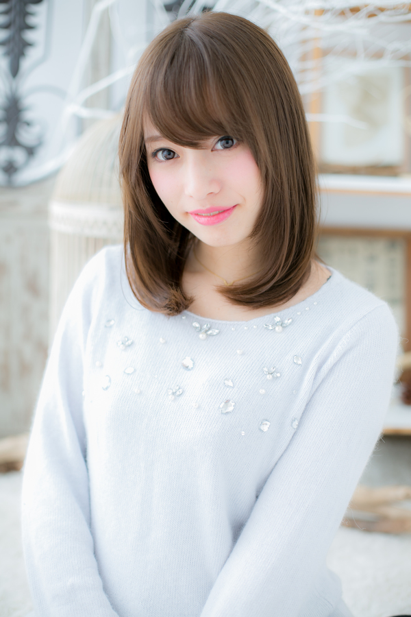 目元ギリギリの斜めバングで目力UP!前下がりでスッキリ小顔に見せて大人かわいい雰囲気なヘアスタイル。くせ毛風パーマでふわミディ、アシンメトリーな耳かけ、個性的な厚めバングも美人度UPでヘアアレンジ。ミディアムを際立たせるグラデーションでトリートメントしたようなカラーリングで大人女子のコーデを完成!髪の悩みも解決する人気のカラーもおすすめ!30代・40代にも◎(メイク担当:COVER HAIR GROUP成田)