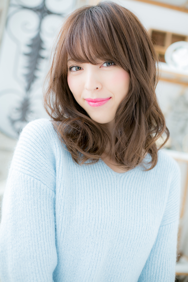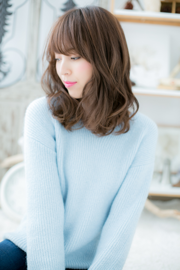 透け感ある斜めバング&くせ毛風カールで色っぽかわいい印象のふわミディのヘアスタイルです。ナチュラルな抜け感スタイルは好感度バッチリで大人女子のファション度UP☆厚めバングや耳かけで大人かわいい雰囲気にヘアアレンジもOK。似合わせカット&前下がりで小顔もGOOD!