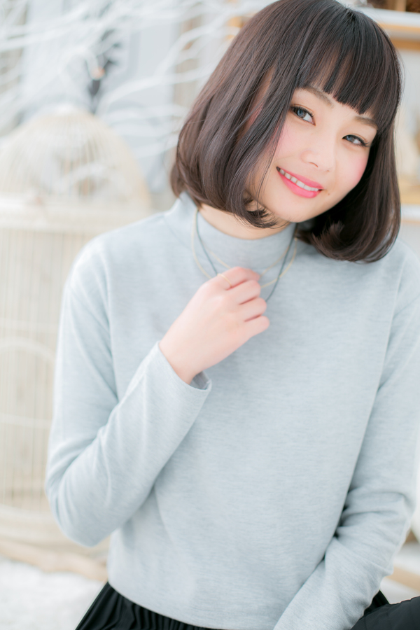 斜めバングや厚めバングで目元を印象つけたり、センターパートでクールにしてもGOOD。大人かわいい前下がりボブは、ナチュラルボブや大人ボブ、フェミニンボブからのイメチェンにオススメ。くせ毛風のふわミディも人気。ヒアルロン酸カラーは白髪にも対応可。