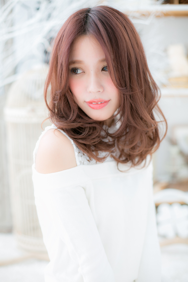 レッド系カラーとセンターパートで個性的に仕上げたグラマラスセミディのヘアスタイル。ノーバングでスッキリと、前下がりの毛流れで輪郭カバーして小顔メイクで大人女子のコーデを完成!斜めバングや厚めバングもフェミニンにもヘアアレンジ◎トリートメントしたようなカラーリングで髪の毛の悩みも解決する人気のカラーやアッシュ系もおすすめ!30代・40にも◎(メイク担当:COVERHAIRGROUP棟方)