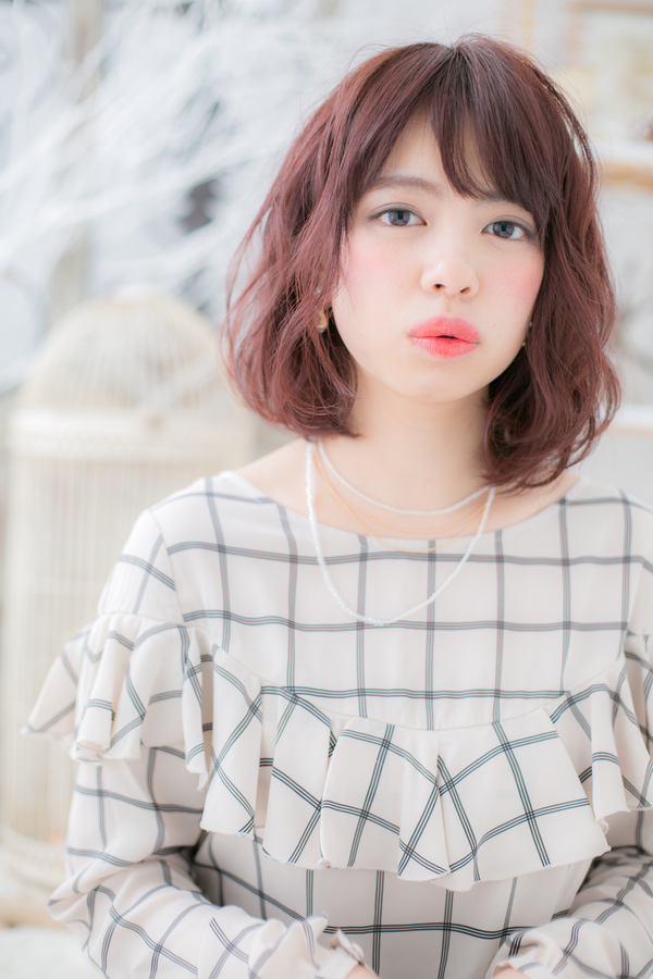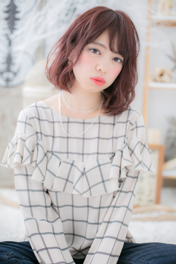 大人かわいい♪甘めカラー☆くせ毛風ミディ