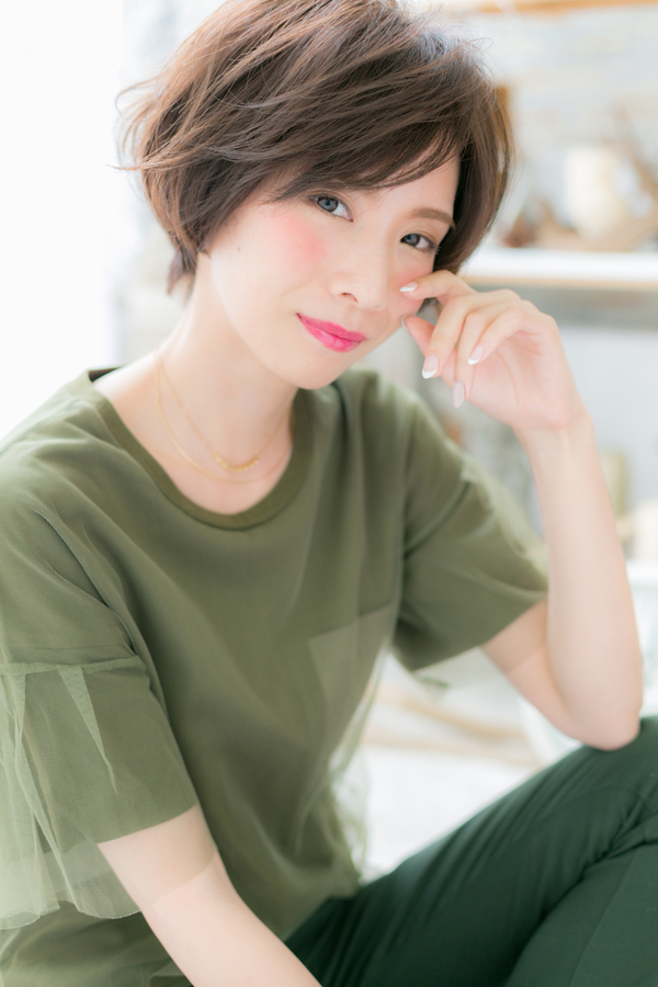 くせ毛風エアリーショートは、斜めバングでラフに流して大人女子のこなれ感を演出。くしゃっとした無造作感が大人かわいい。厚めバングやオン眉、耳かけでガーリーにしてもGOOD!トリートメントいたようなカラーリングで髪の毛の悩みも解決!人気のカラーやアッシュグレー、ブブリーチなしもおすすめ!30代・40代にも◎(メイク担当:COVERHAIRGROUP棟方)