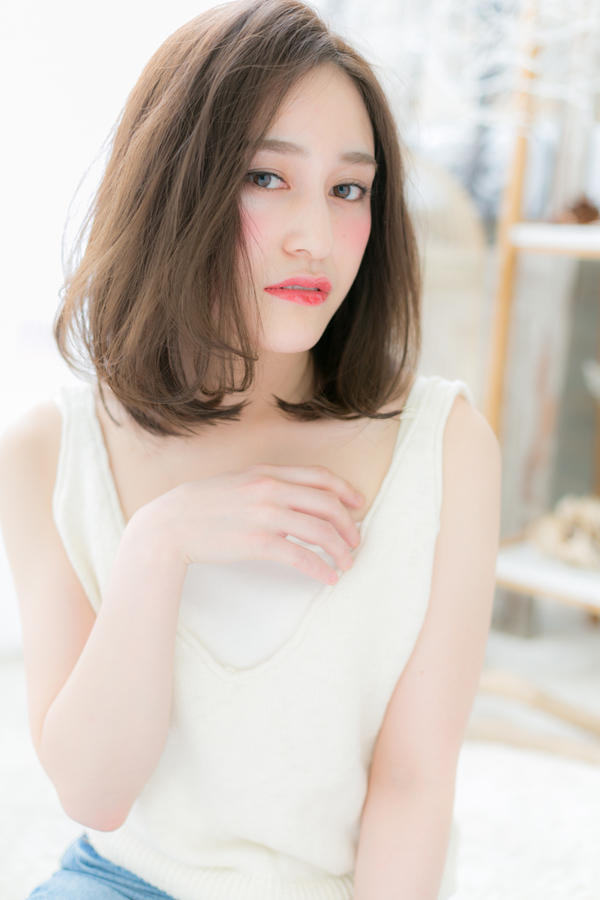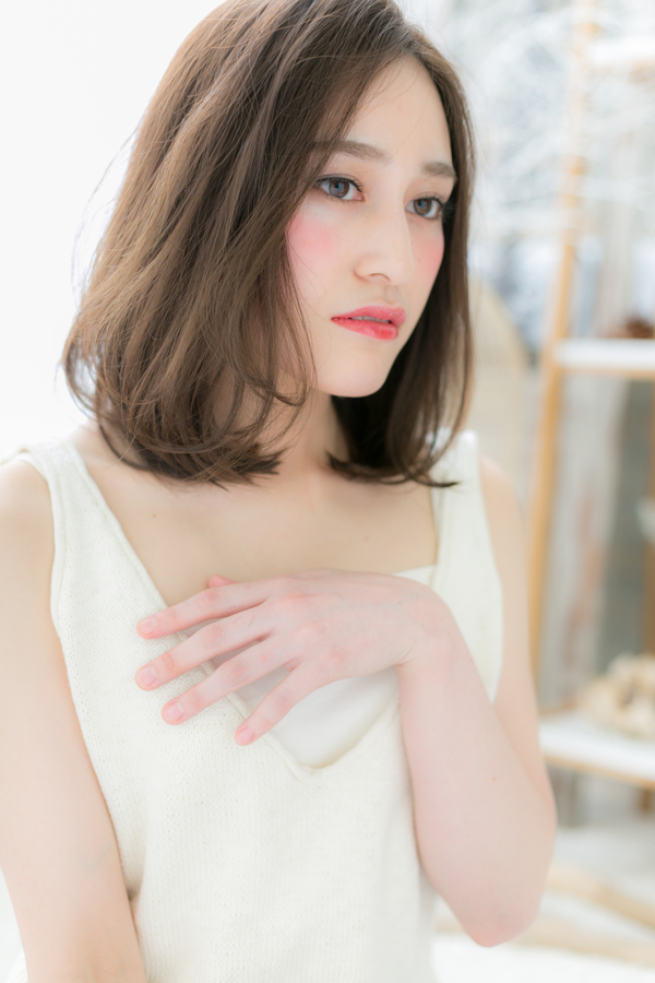 自然に内巻きになるようなカットなので、手ぐしブローでOKの簡単スタイリングが嬉しい。斜めバングや厚めバングで目力UP!ナチュラルボブやフェミニンボブ、大人ボブや前下がりボブからのイメチェンにGOOD。ヒアルロン酸カラーは白髪にも対応可。