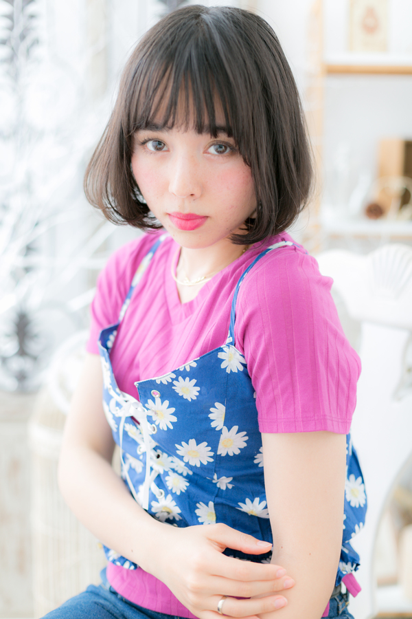 透け感シースルーバングでガーリーな雰囲気で大人女子のコーデを完成。前下がりで輪郭カバーして小顔に仕上げたナチュラルボブ。ツヤカラーとレイヤーで動きを出し、重めスタイルに軽さとやわらかさをプラス。ミディヘアを際立たせるグラデーションで髪の毛の悩みも解決!カラーはアッシュグレー、ブリーチなしもおすすめ!30代・40代にも◎(メイク担当:COVERHAIRGROUP 棟方)
