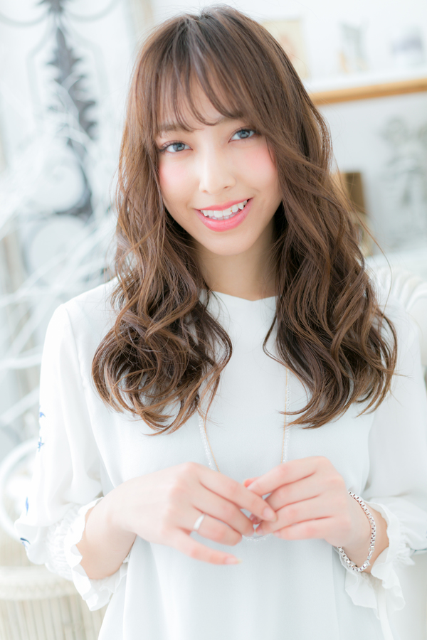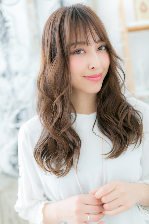 斜めバングの外国人風グラマラスロング