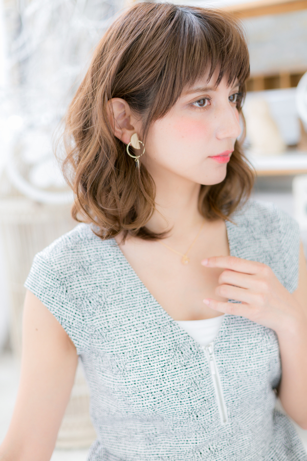 保湿クリームをしっかりもみ込んでふんわりドライ。ツヤのあるスタイルふわミディに。フェミニンボブや前下がりボブからの伸ばしかけにもGOOD。耳かけしたり、斜めバングや厚めバングで目力強調しても大人かわいい。