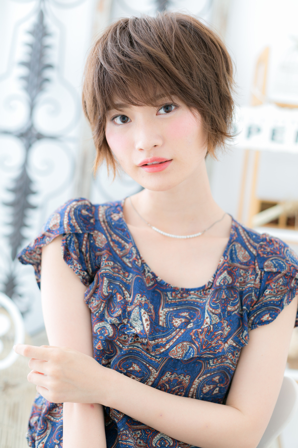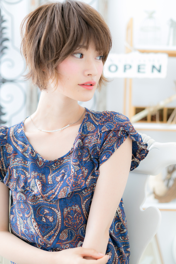 トップから流した厚めバング&斜めバングで目力強調で大人女子のファッション度UP。サイドの前下がりラインで小顔に。美人度UPの外国人風小顔エアリーショートのヘアスタイル。くせ毛風のやわらかな動きでフェミニンに♪トリートメントしたようなカラーリングで髪の毛の悩みも解決!人気のカラーやアッシュグレー、ブリーチなしもおすすめ!30代・40代にも◎(メイク担当:COVERHAIRGROUP棟方)
