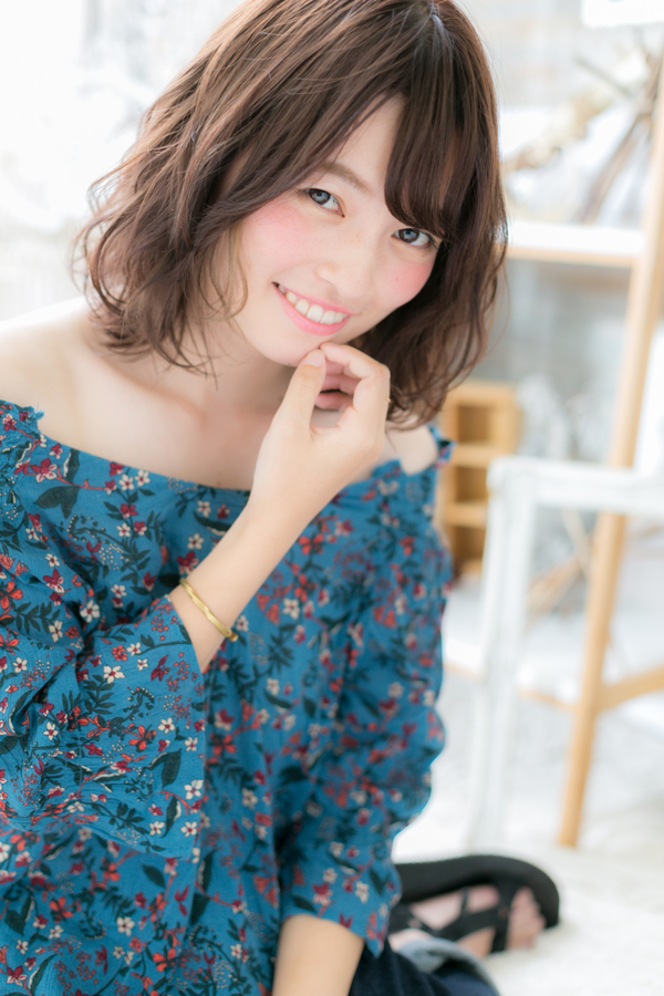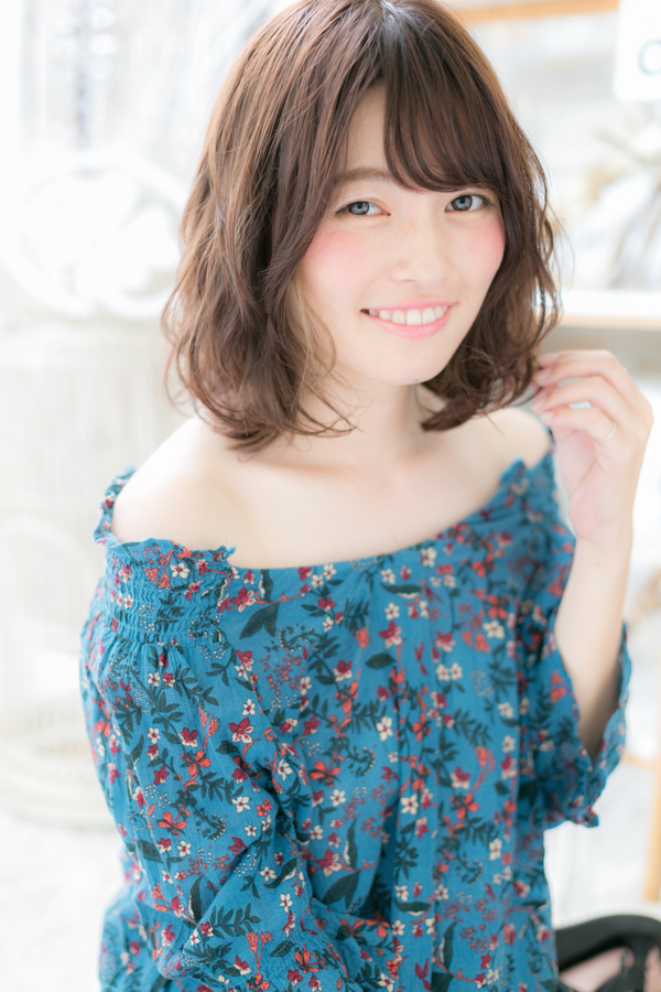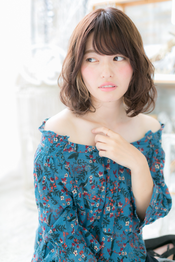 保湿効果の高いトリートメントバームで、くせ毛風のウェーブ一つ一つにツヤ感を持たせます。ナチュラルボブやフェミニンボブ、大人ボブや前下がりボブからの伸ばしかけにオススメ。似合わせカットの技術で好感度の高い、抜け感モテスタイルに仕上げます。