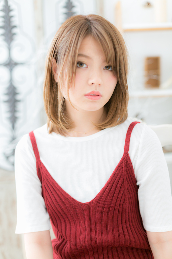 透明感溢れるツヤカラーで、ミディアムヘアを際立たせるグラデーションカラーを綺麗にみせ、髪の毛の悩みも解決。斜めバングで表情をチラ見せしてsexyに。前下がりでスッキリ小顔見せで大人女子のコーデを完成!30代・40代にも◎(メイク担当:COVERHAIRGROUP成田)
