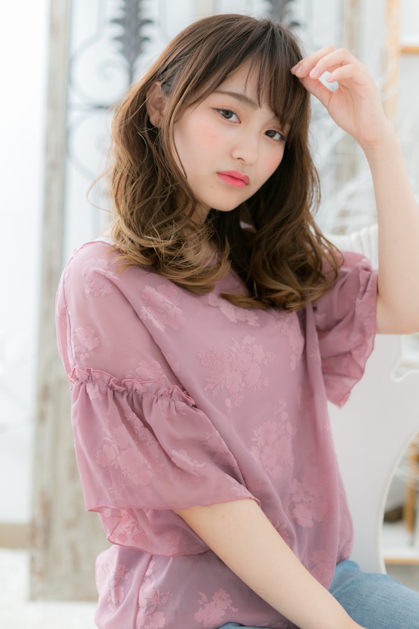 ゆるふわっとした優しい雰囲気のくせ毛風セミディのヘアスタイル。くびれパーマでフェミニンにたり大人女子のコーデを楽しむ。斜めバングや厚めバングで目元を印象つけたり、耳かけも大人かわいい。トリートメントしたようなカラーリングで髪の毛の悩みも解決!人気のカラーやピンク系のからーもおすすめ!(メイク担当:COVERHAIRGROUP棟方)