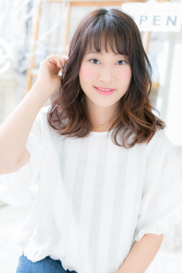 頬あたりからルーズに巻いたIラインのヴェールウェーブのヘアスタイル。デジタルパーマをかければ簡単スタイリングで大人女子のコーデを完成。くせ毛風パーマで抜け感を出したり、Aラインにしても大人かわいい。髪の毛の色は暗めのグラデーションや思い通りの茶色も◎30代・40代にもおすすめ!(メイク担当:COVERHAIRGROUP 棟方)