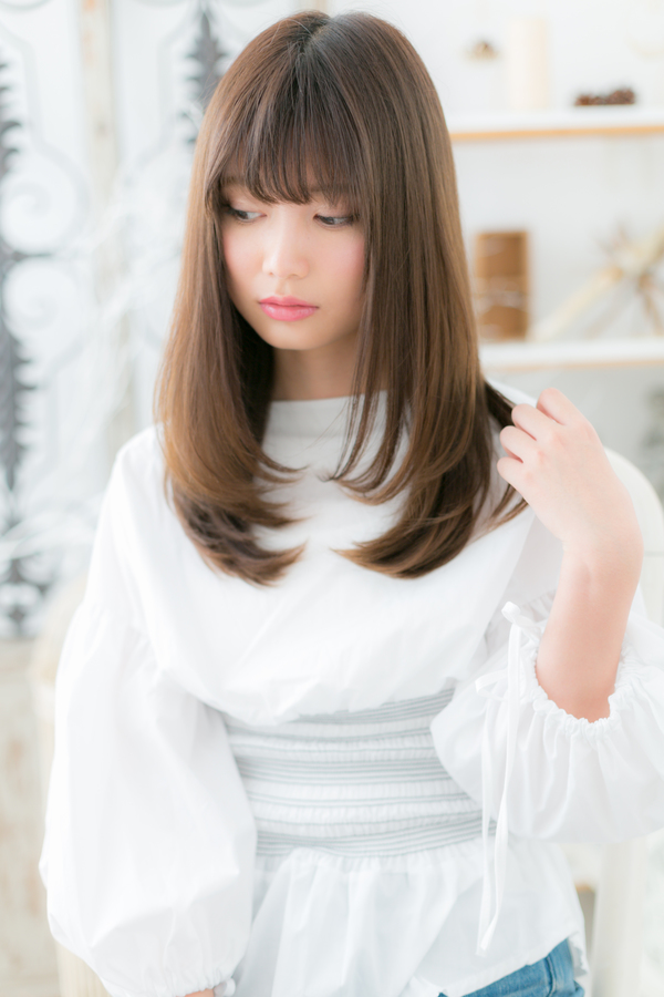 ハイレイヤーで立体感を出しグラマラスに仕上げたエアリーロング。斜めバングや厚めバングで目元を印象つけて大人女子のコーデを完成!ニュアンス感ある動きを出せば、髪の色は暗めのグランデーションやベージュで前下がりで小顔見せ効果もバッチリ♪トリートメントしたようなカラーリングで髪の毛の悩みも解決!人気のカラーやグレージュ、アッシュグレーもおすすめ。30代・40代にも◎